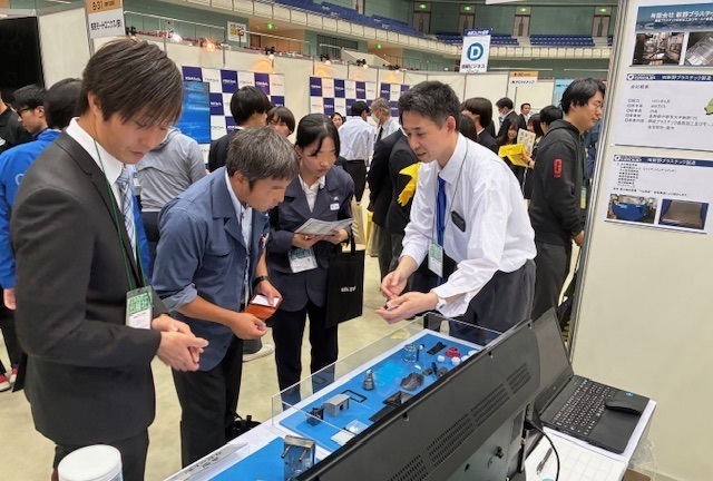 初日の24日には地元中野市からも多くの高校生がブースに訪れていただき、プラスチック製品の説明や、射出成形加工のフローなどを紹介させていただきました。